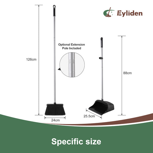 Eyliden Broom Dustpan Set, Broom and Dustpan Combo with 52" Long Handle for Lobby Kitchen Room Office Indoor, Dustpan with Broom Set for Home, Floor Use Lobby Dust Pan Sweep Combo Black