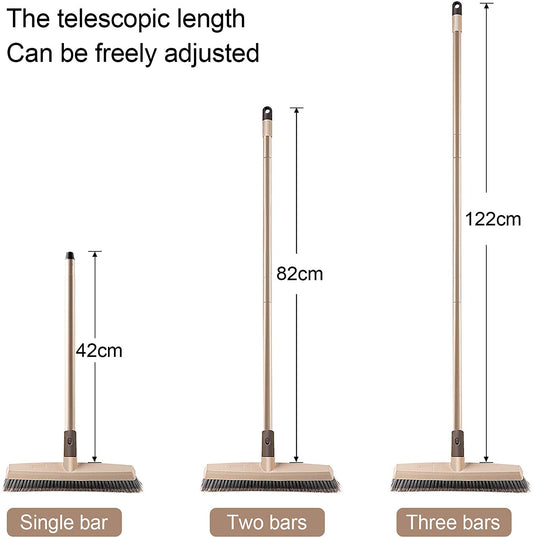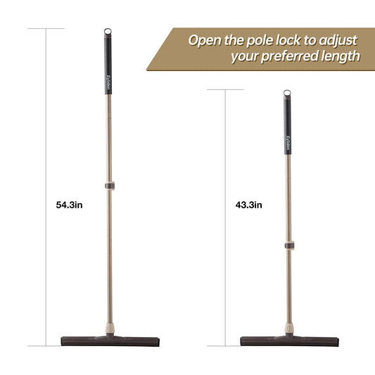 Eyliden Floor Squeegee Scrubber 54in Long Adjustable Telescopic Pole Heavy Duty Household Broom Perfect for Shower Bathroom Home Kitchen Tile Pet Hair Glass Window Marble Water Foam Cleaning (Brown)