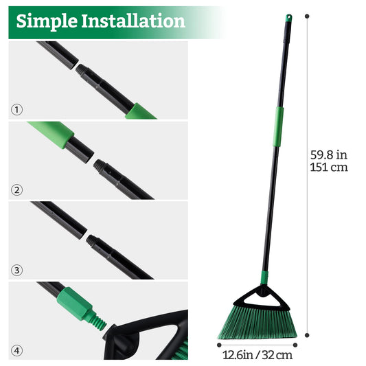 Eyliden Push Broom 12.6" Wide Multi-Surface Heavy Duty Angle Broom, 48" Long Handle, Stiff Bristle Broom Brush for Cleaning Patio Garage Deck Concrete Wood Stone Tile Indoor Outdoor Rough Floor