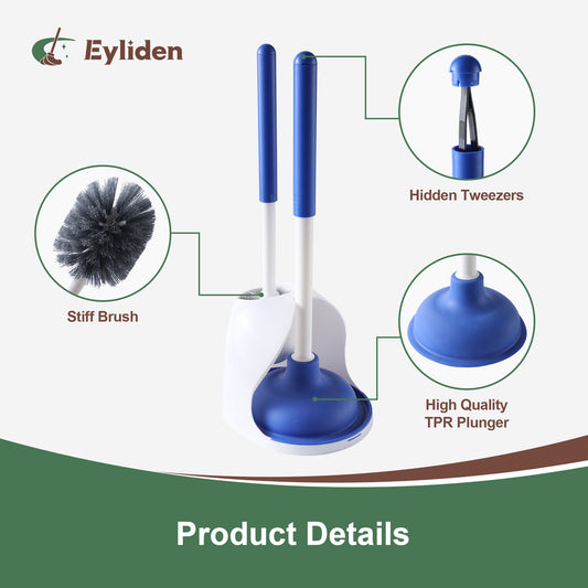 Eyliden Toilet Brush and Plunger Set for Toilet Cleaning, Blue