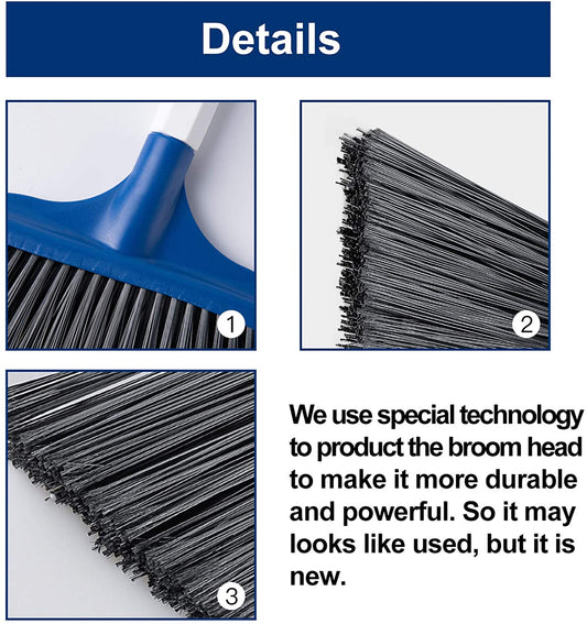 Heavy-Duty Broom Outdoor Commercial Perfect for Courtyard Garage Lobby Mall Market Floor Home Kitchen Room Office Pet Hair Rubbish 54in Blue