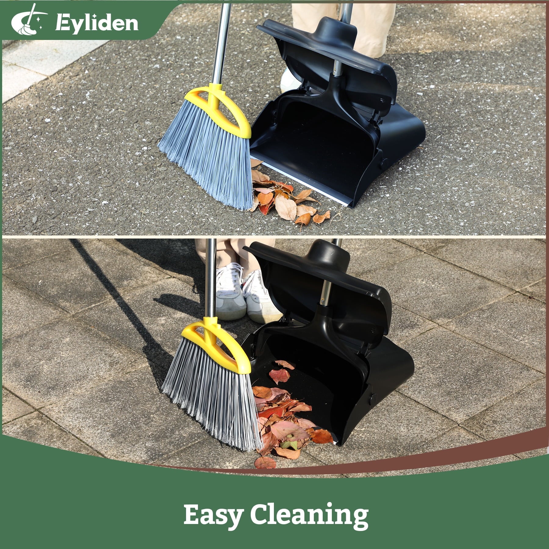 This commercial broom and dustpan set is built for heavy-duty outdoor and indoor cleaning, making it ideal for garages, lobbies, offices, and large spaces. The broom features a 55-inch long handle and an angle broom design with a unique triple-bristle structure for efficient sweeping of dust, leaves, pet hair, and debris. The large dustpan comes with wheels for easy mobility, a windproof lid to prevent blow-away, and a generous capacity for big cleanups. Constructed from durable stainless steel and plastic, this broom and dustpan combo set ensures long-lasting performance for commercial or home use.
