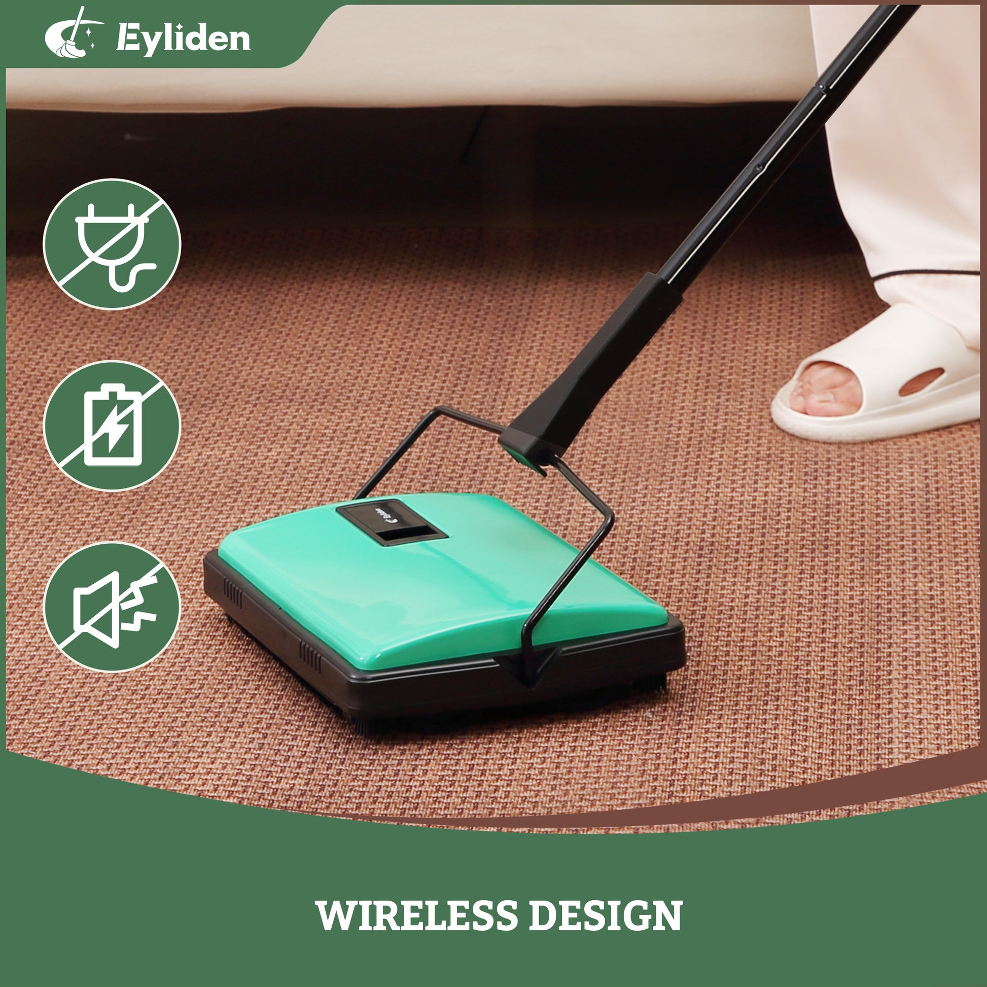 Eyliden New Upgrade Manual Carpet Sweeper with Extra Replaceable Roller Brush, L size, Green